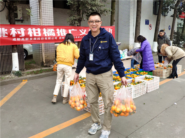 義賣現(xiàn)場(chǎng),一筐筐、一個(gè)個(gè)柑橘,如暖陽般格外醒目,給歲末年關(guān)的科工園區(qū),憑添了辭舊迎新的溫暖氣氛,來往行人紛紛駐足,品鑒甘甜滋味,挑選鐘意果實(shí)。半天時(shí)間里1500多斤柑橘就被搶購一空。