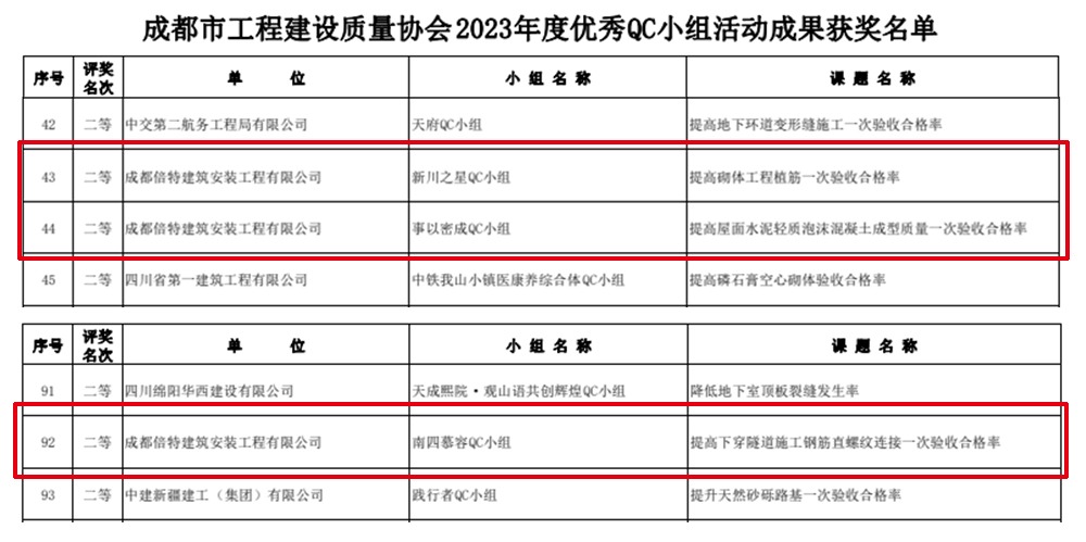 倍特建安論文研究與QC小組活動(dòng)成果斬獲佳績(jī)
