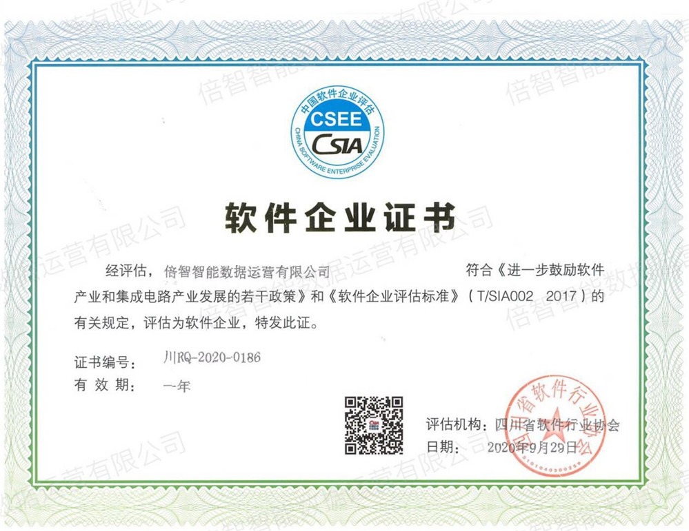 近期,倍智智能數(shù)據(jù)運營有限公司獲得四川省軟件行業(yè)協(xié)會頒發(fā)的《軟件企業(yè)證書》與《軟件產(chǎn)品證書》,順利通過“雙軟認證”,正式成為“雙軟企業(yè)”。瀏覽 : 8131分享