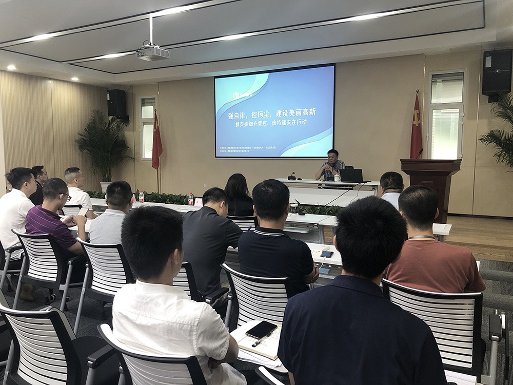 為進(jìn)一步提高建筑工地?fù)P塵污染防治工作水平,9月5日下午,建安公司在一樓會議室召開題為“強自律,控?fù)P塵建設(shè)美麗高新”的揚塵隱患防治和處罰專項培訓(xùn)。本次培訓(xùn)特邀成都市高新區(qū)生態(tài)環(huán)境和城市管理局規(guī)劃城建大隊大隊長譙哲、揚塵監(jiān)察大隊大隊長黃勇指導(dǎo)、授課。會議由公司副總經(jīng)理代付全主持,公司經(jīng)營工作召集人、副總經(jīng)理趙瓊,工程管理部、質(zhì)量安全部及各在建項目相關(guān)管理人員共96人參加會議。瀏覽 : 9490分享